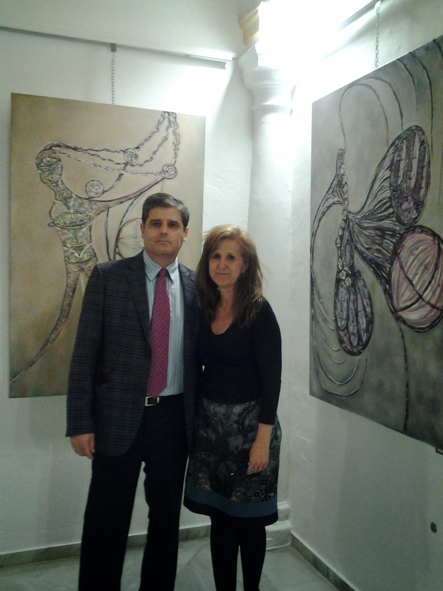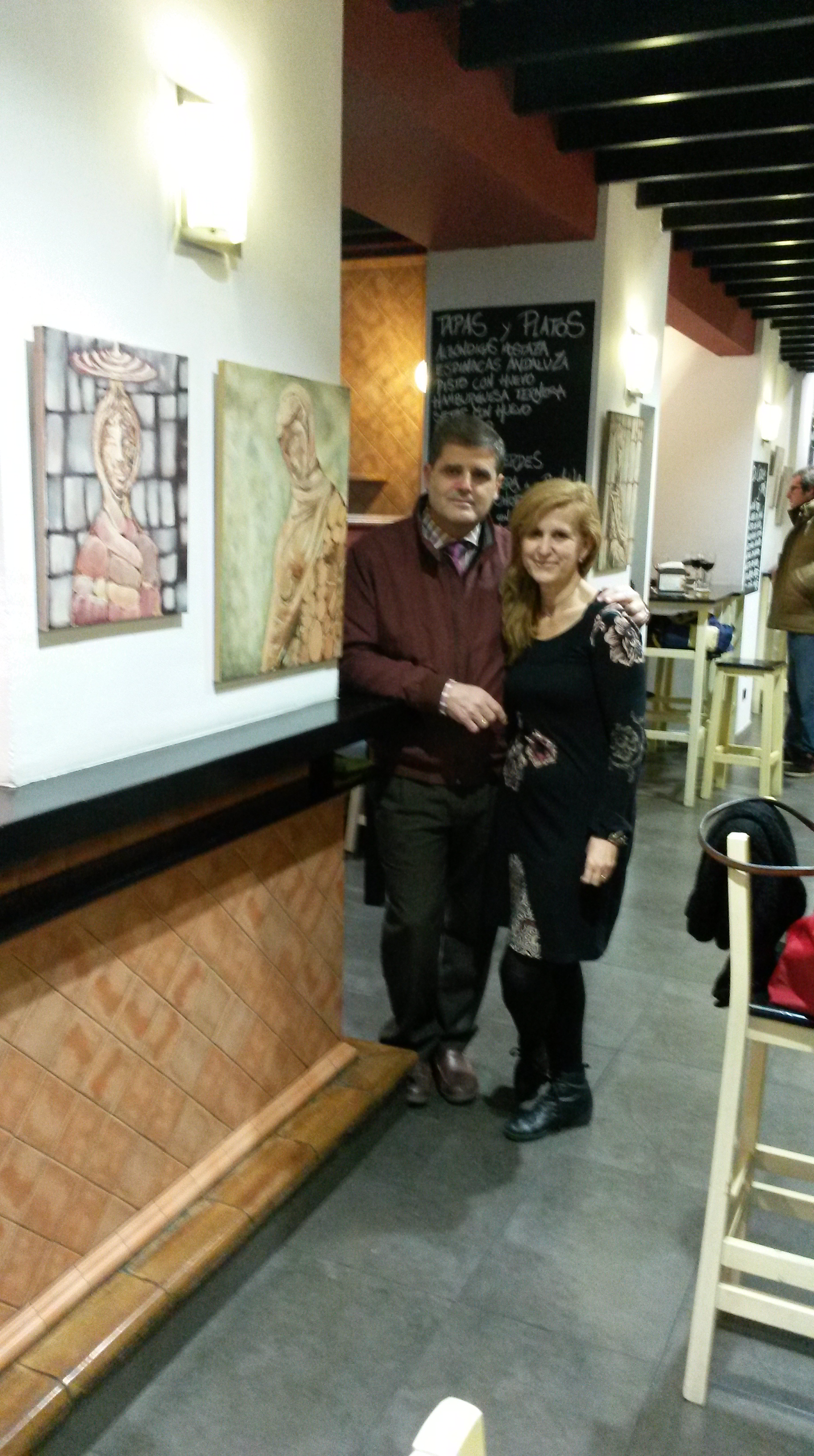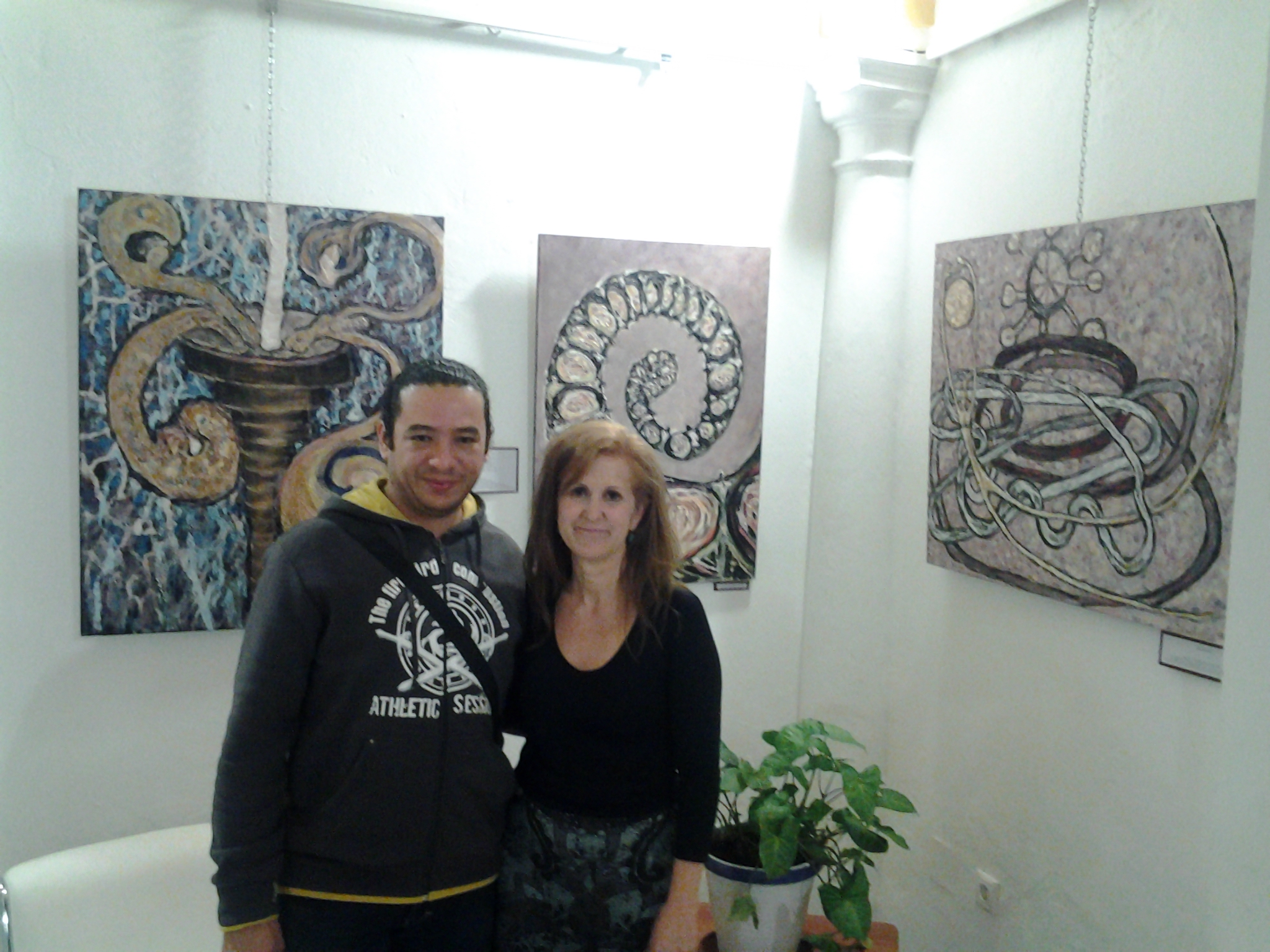 Con mi amado Juanlu que trabajó duro ( distribuyendo la colocación mejor de los cuadros, las luces, colgándolos…). Gracias