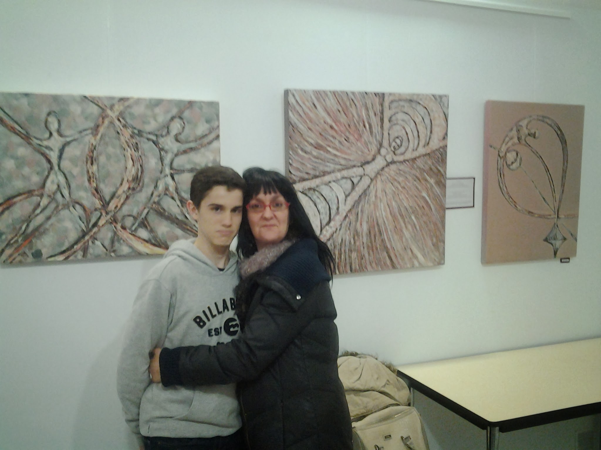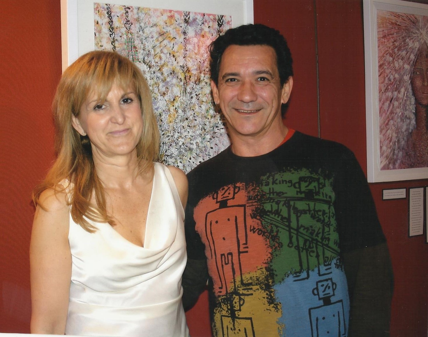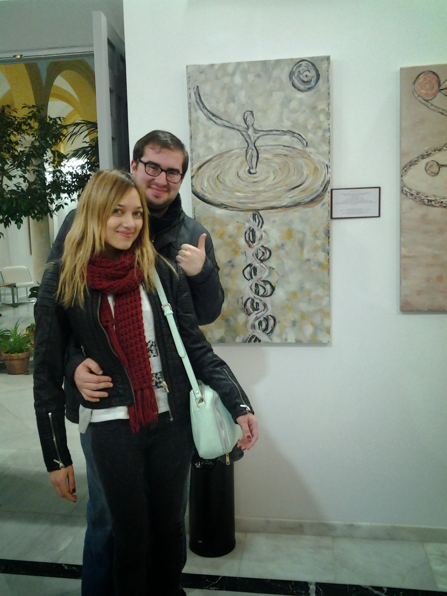 Con mi amado Juanlu que trabajó duro ( distribuyendo la colocación mejor de los cuadros, las luces, colgándolos…). Gracias