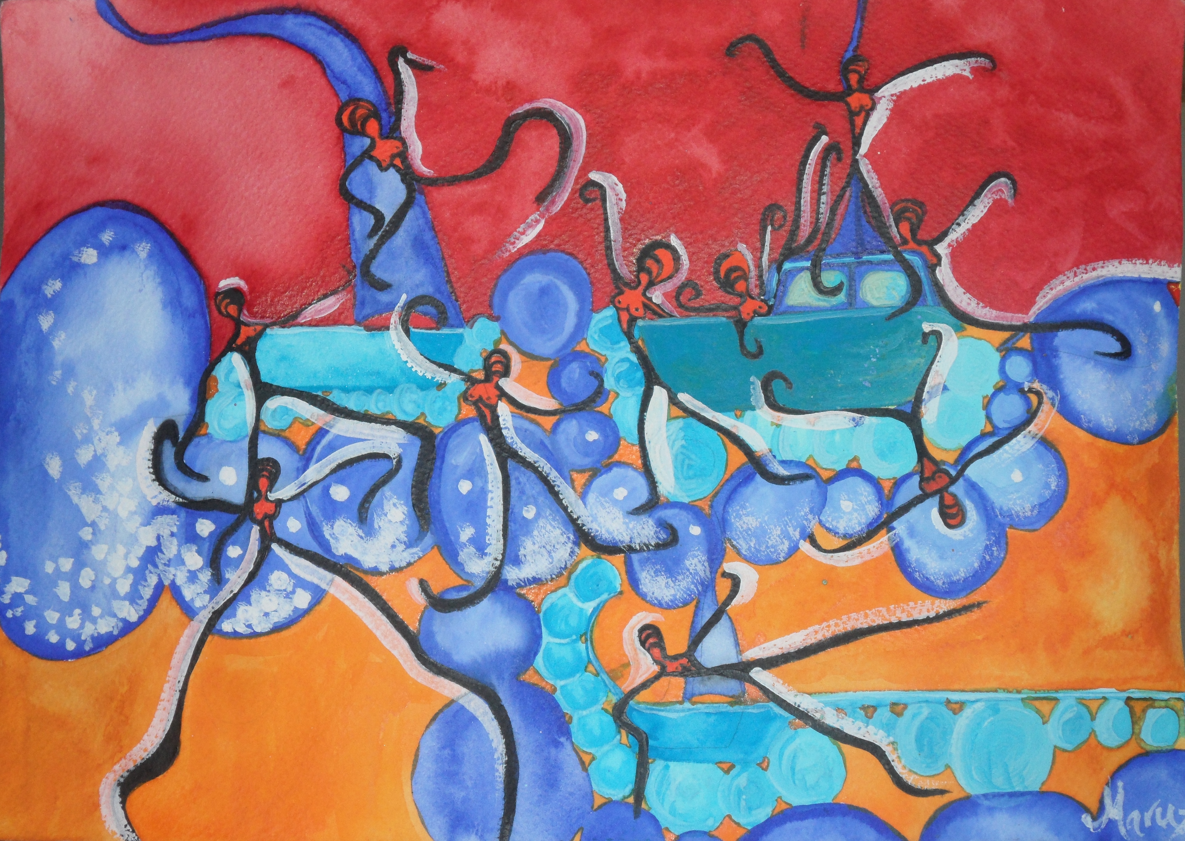Me ha sido imposible escanear todas las acuarelas. Algunas se han tenido que fotografiar sobre cristal porque estaban ya enmarcadas. Por eso la calidad y claridad en algunas es deficiente. I´m sorry.