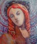 - Los amantes (boli, acrílico) inspirada en el cabellero místico de Odilon Redon