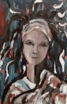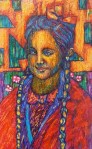 - mi madre con sus trenzas psicodélicas (boli, acrílico)