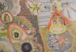 - Saliendo del Cedro (acrílico, boli) inspirada en Odilon Redon