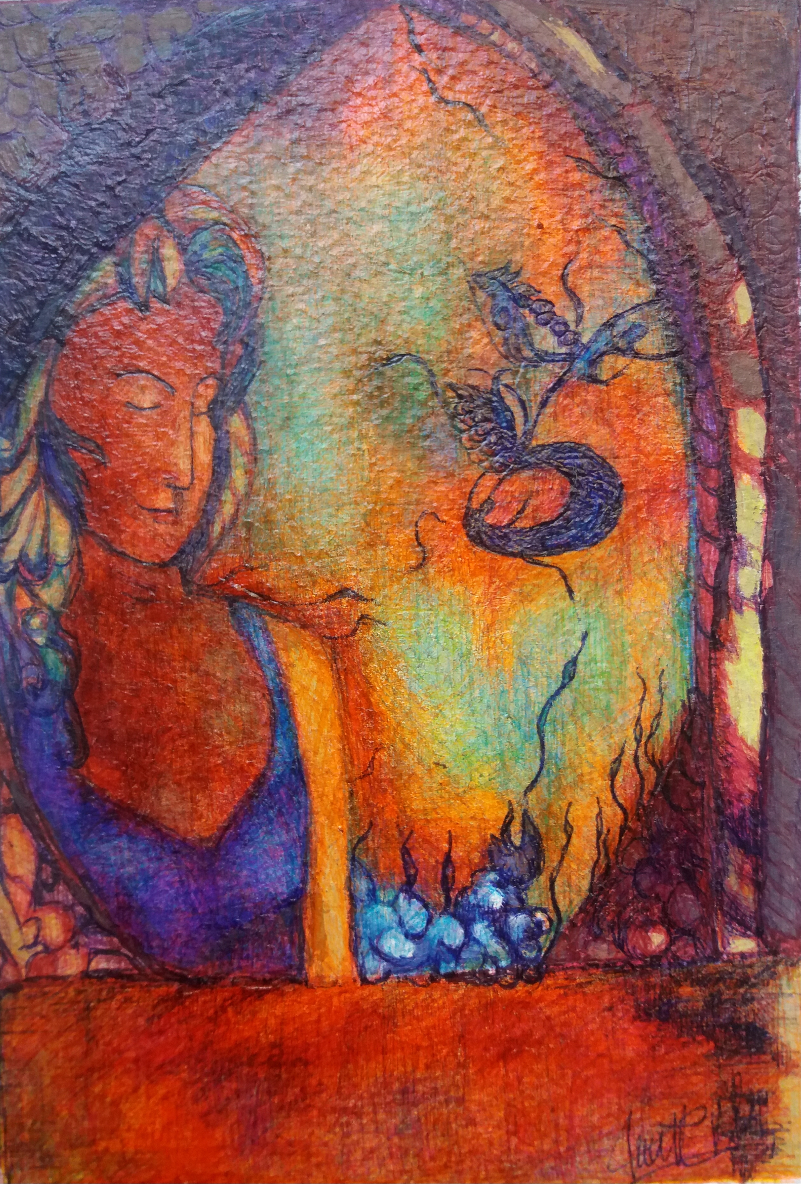 Las serpientes (boli, acrílico)versionando a Odilon Redon